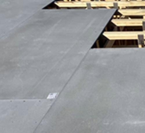 NOCOM is a ¾″ thick tongue-and-groove structural cement board designed to replace poured gypsum toppings and other wet systems. It installs with standard carpentry tools and supports immediate trade loading. UL Listed 1- and 2-hour fire-rated floor & ceiling assemblies.